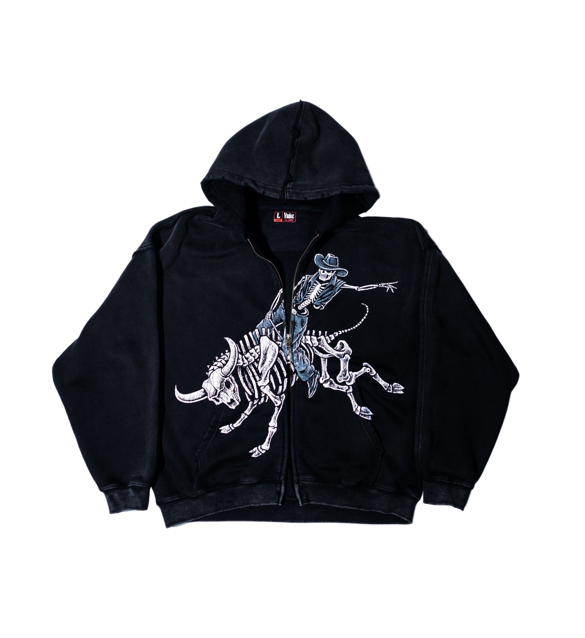 Double Zip Bull Rider Hoodie (Vintage Black)